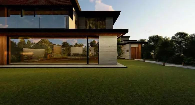 宅子的外立面以灰白色作為主色,中間以原木木紋為調劑,很有日式建筑的特色,低調中帶著高級感。