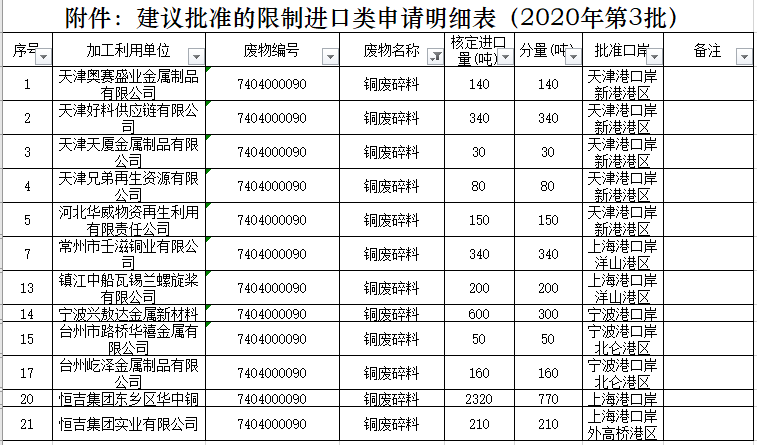 2020年第三批廢銅、廢鋁、廢鋼鐵批文公布