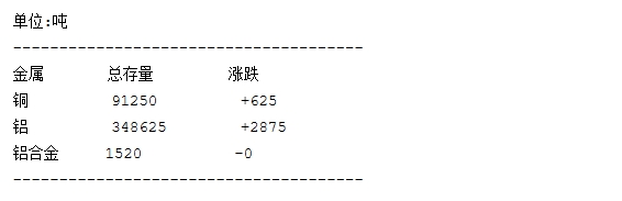 LME 7月1日有色金屬庫(kù)存統(tǒng)計(jì)