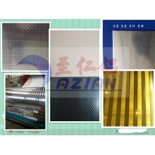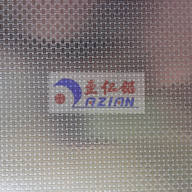 我司主要生產(chǎn)加工壓花鋁板,該花紋為編織紋花紋鋁板。該花紋鋁板是經(jīng)過(guò)壓花、剪切、氧化、封孔、自然涼干等工藝過(guò)程,形成表面帶有一層致密的三氧化二鋁保護(hù)膜的優(yōu)質(zhì)壓花鋁板。它耐酸雨腐蝕性強(qiáng)于普通不銹鋼,具有持久的光澤和美觀的花紋。防腐涂層性能穩(wěn)定,附著力強(qiáng),不脫落,耐沖擊,無(wú)毒副作用,安全環(huán)保。產(chǎn)品表面整潔、光澤。電氧化以后可以消除鋁板表面殘留油污、人工搬運(yùn)指印、輕微的劃傷、擦等。被廣泛應(yīng)用于冷柜、冷庫(kù)、冰箱、紅酒柜、太陽(yáng)能熱水器水箱反光板、裝飾鋁質(zhì)品、燈飾、箱包、消毒柜、廚柜、中央空調(diào)通風(fēng)管道、室內(nèi)外裝修、機(jī)械設(shè)備外殼等行業(yè)。壓花后能夠增強(qiáng)鋁板的厚度、強(qiáng)度,可壓厚度為0.15mm—3.0mm、寬度最寬1.4m的鋁板。壓花之后鋁板可加厚0.1mm-0.25mm。.尺寸可按客戶要求生產(chǎn)。