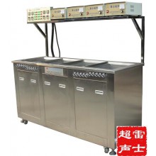 電解式陰極陽(yáng)極雷士超聲波清洗機(jī),該設(shè)備組成:超聲波清洗槽、鼓泡漂洗槽、防銹槽組成一體式三槽設(shè)備。超聲波發(fā)生器將工頻電能轉(zhuǎn)變成28KHz的高頻電信號(hào),通過(guò)高頻電纜輸送到超聲波換能器上,換能器被加上高頻電壓后,產(chǎn)生強(qiáng)有力的超聲振動(dòng),在液體中迅速傳播,作用于超聲波清洗槽內(nèi)液體介質(zhì)中,產(chǎn)生每秒2.8萬(wàn)次的振動(dòng),從而將工件器件附著的污垢震落,并同時(shí)通過(guò)正負(fù)極電解方式,達(dá)到清洗目的。設(shè)備具有時(shí)間設(shè)定、加熱控制、超聲清洗、電解、循環(huán)過(guò)濾、緊急停止等功能。