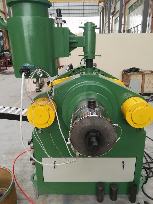1、 本擠壓機采用微電腦PLC控制, 操作時可通過觸摸屏(人機界面)對產(chǎn)品工藝參數(shù)的要求進行設(shè)置及修改,