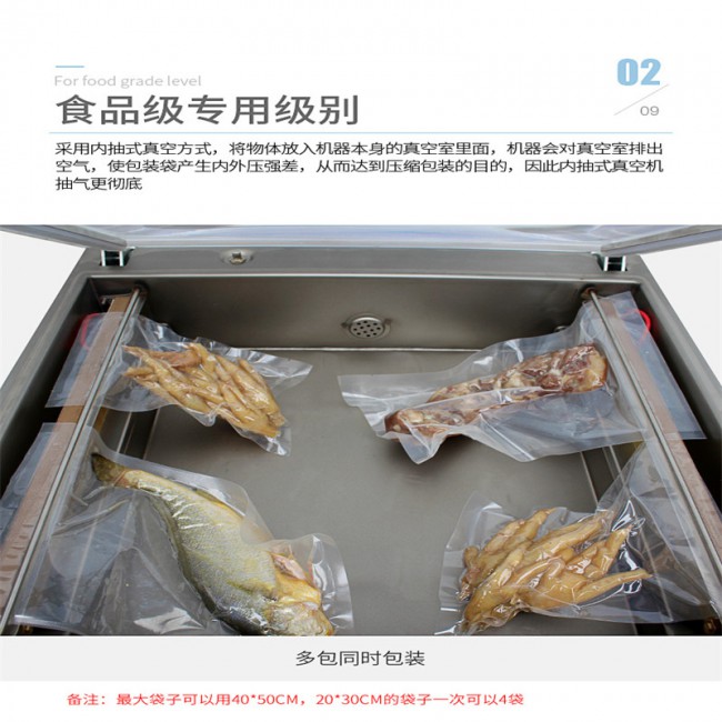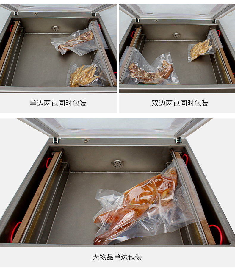 真空包裝機(jī)適用于食品行業(yè)可包裝火腿、肉類、魚干、雞鴨肉類、醬制品、調(diào)味品、果脯、糧食、豆制品、化學(xué)制品、藥材、農(nóng)產(chǎn)品、電子、五金零件等商品進(jìn)行真空后充惰性氣體包裝,經(jīng)抽真空包裝后的物品可防止氧化、霉變、蟲蛀、受潮、延長(zhǎng)產(chǎn)品儲(chǔ)存期限。