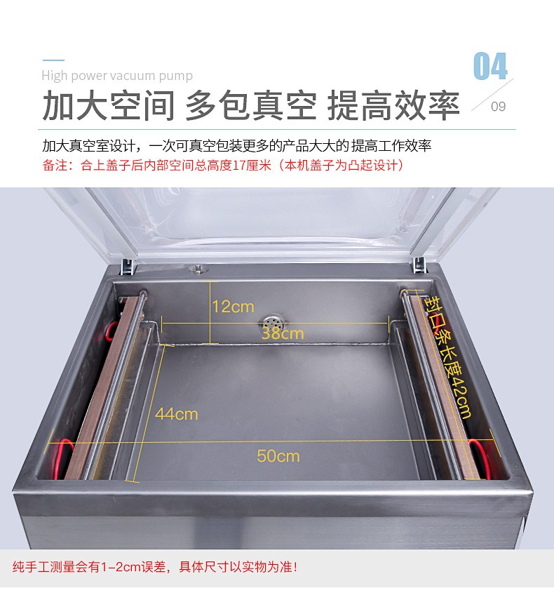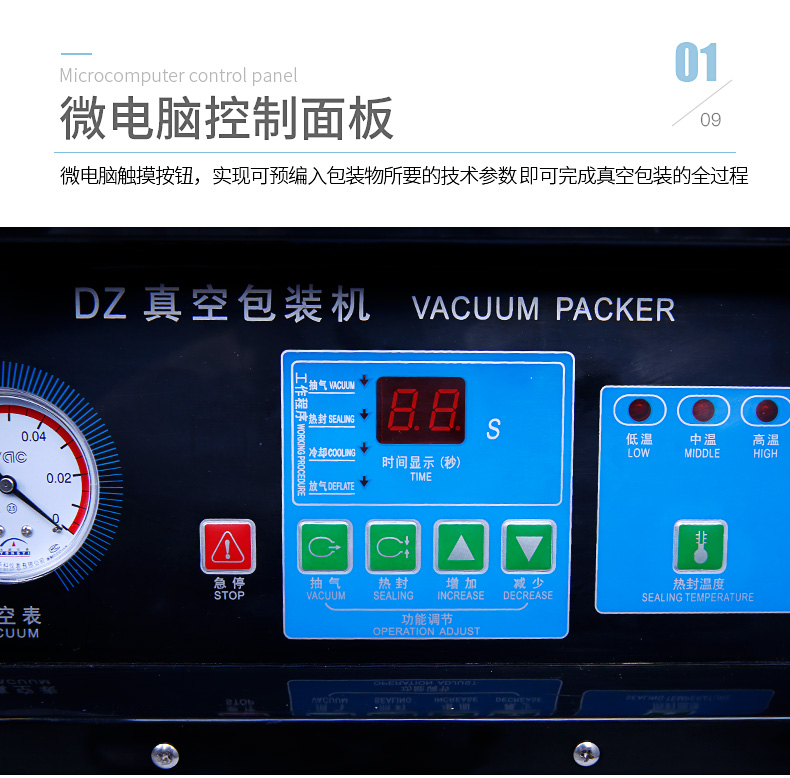 單室400真空包裝機(jī)為半自動(dòng)真空設(shè)備,只需按下真空蓋即自動(dòng)按程完成真空、封口、印字、冷卻、排氣的全過程。適用于各類食品、藥品、土特產(chǎn)、水產(chǎn)品、化工原料等各種固體、粉狀、糊狀、液體,電子產(chǎn)品(半導(dǎo)體、電路板、電子成品等)及機(jī)金屬加工件的真空包裝,以防潮、防氧化變色。經(jīng)過包裝的產(chǎn)品可防止氧化,霉變、蟲蛀、受潮,可保質(zhì)、保鮮延長(zhǎng)產(chǎn)品儲(chǔ)存期限。