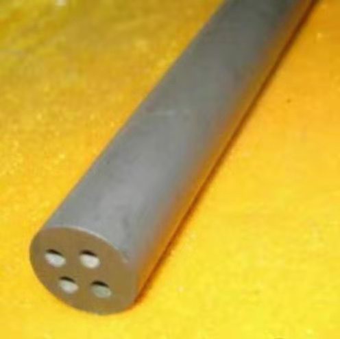 二硅化鉬是一種復(fù)合材料,其在1000℃以上高溫時(shí)有抗氧化性和耐腐蝕性,但低溫時(shí)較脆,另外超過(guò)1200℃高溫會(huì)喪失蠕變能力而限制了其作為結(jié)構(gòu)材料的應(yīng)用,但結(jié)合其他材料作為復(fù)合材料可以提高使用效果。二硅化鉬及以其為基礎(chǔ)的材料通常由燒結(jié)制得,二硅化鉬保護(hù)管與二硅化鉬鼓泡管就是通過(guò)等離子噴涂生產(chǎn)致密的整體式和復(fù)合形式制作的材料,為了快速冷卻,通常還會(huì)添加少量稀土元素,利用二硅化鉬的耐高溫性能的特點(diǎn),將其制成二硅化鉬鼓泡管,被廣泛應(yīng)用于玻璃行業(yè)中進(jìn)行玻璃液提純。常用的二硅化鉬鼓泡管直徑為12,14,16,18,孔數(shù)一般有三孔,四孔,五孔,六孔,九孔,孔徑大約1毫米直徑左右,通過(guò)壓縮機(jī)注入空氣進(jìn)入玻璃液,可以清除更加細(xì)微的雜質(zhì),使玻璃純度得到提高。