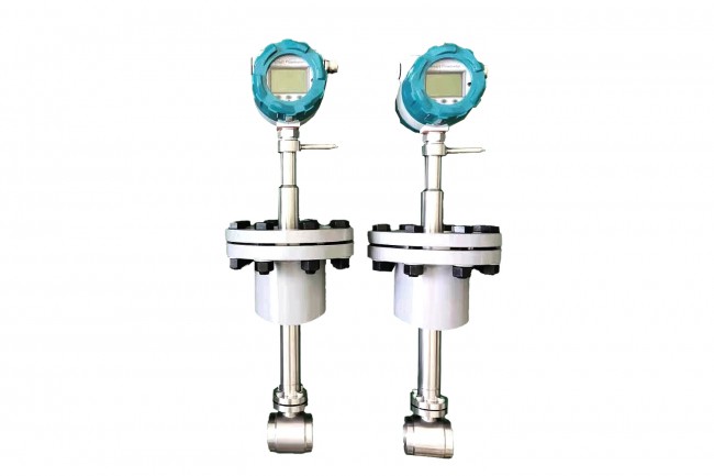 按國際標準化組織IS07145(在環(huán)形截面封閉管道中的流體流量測定—在截面一點的速度測量法),采用埋入壓電晶體的渦街測速探頭,插入大口徑工業(yè)管道內(nèi),將卡門旋渦頻率轉(zhuǎn)換為與流量成正比的電流或電壓脈沖信號或4~20mADC電流信號。