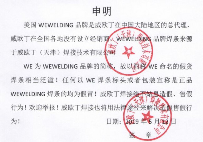 注意:威歐丁是美國WEWELDING品牌的總代理,威歐丁在各地沒有設立經(jīng)銷商,WEWELDING33M(簡稱威歐丁33M)鎂合金焊絲來源于威歐?。ㄌ旖颍┖附蛹夹g有限公司!