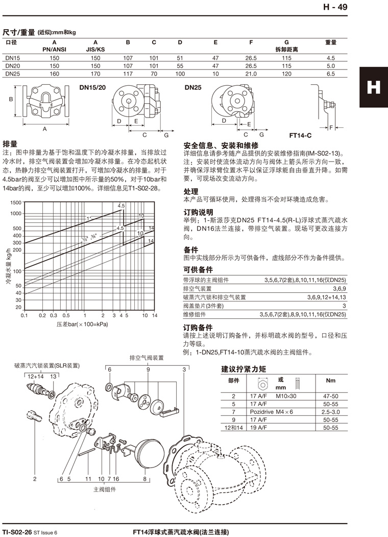 SpiraxSarco斯派莎克FT14法蘭疏水閥的技術(shù)參數(shù):