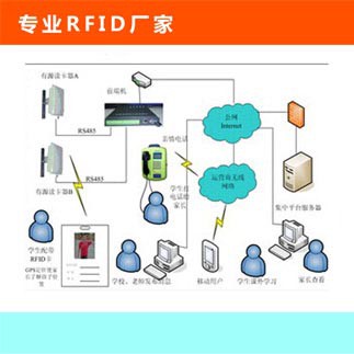 (b)學(xué)生放學(xué)時(shí),學(xué)生佩戴胸卡,從讀卡器A到讀卡器B,讀卡器A首先讀到胸卡信息,并送往前端機(jī);其次是讀卡器B讀到胸卡信息,并送往前端機(jī);當(dāng)胸卡脫離識(shí)別區(qū)域后,前端機(jī)根據(jù)接收胸卡先后順序判斷學(xué)生進(jìn)出方向,并把判斷結(jié)果送往系統(tǒng)平臺(tái);系統(tǒng)平臺(tái)根據(jù)胸卡對(duì)應(yīng)的學(xué)生的資料把短信送往學(xué)生家長(zhǎng)的手機(jī)上。