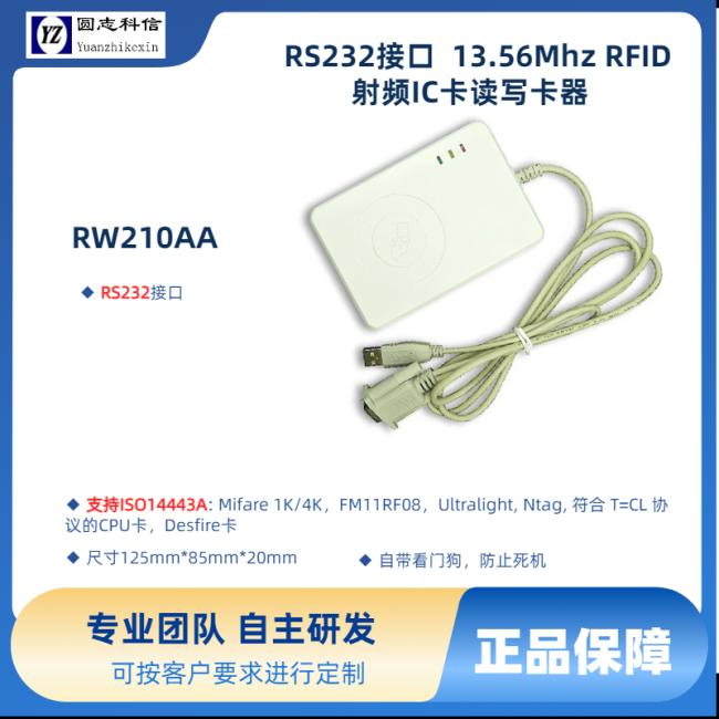 | RW210AA-F | RS232接口 ISO14443A 增加對FM1208CPU卡專用功能支持 |