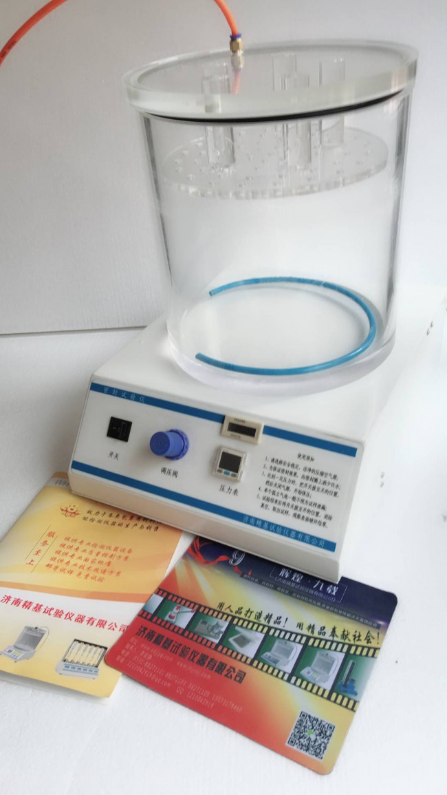 通過(guò)對(duì)真空室抽真空,使浸在水中的試樣產(chǎn)生內(nèi)外壓差,觀測(cè)試樣內(nèi)氣體外逸情況,以此判定試樣的密封性能;通過(guò)對(duì)真空室抽真空,使試樣產(chǎn)生內(nèi)外壓差,觀測(cè)試樣膨脹及釋放真空后試樣形狀恢復(fù)情況,以此判定試樣的密封性能。
