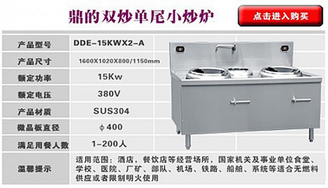 商用不銹鋼電熱大鍋灶(發(fā)熱盤覆底式)是我單位根據(jù)我國餐飲業(yè)的經營模式自主研發(fā)的一種最新型商用電熱炊具,采用不銹鋼鍋體與鋁制發(fā)熱盤敷焊共用等多項新技術新工藝研制而成,解決了從前大于30公分的弧形不銹鋼鍋底與鋁發(fā)熱盤無法敷焊的歷史記錄,產品技術新穎質量可靠具有熱負荷大、導熱性能好、機械強度高、故障率低等特點;熱效率可達95\%以上,并且可在400℃高溫下長時間干燒不受損傷,使用輝煌商用電熱鍋可減少部分送風和排風、煙道等裝置,即減少工程籬工及材料成本的投資,節(jié)省了煤氣管道的施工和配套費用。由于無明火燃燒,爐具不需使用隔熱耐火磚,爐面冷卻水等設備,可縮小爐具體積從而減少場地占用面積。傳統(tǒng)爐具要配套安裝油、煤氣管道、煙道送/排風裝置、隔熱耐火磚、爐面冷卻水等設備,增加工程施工投資成本及場地點用面積。