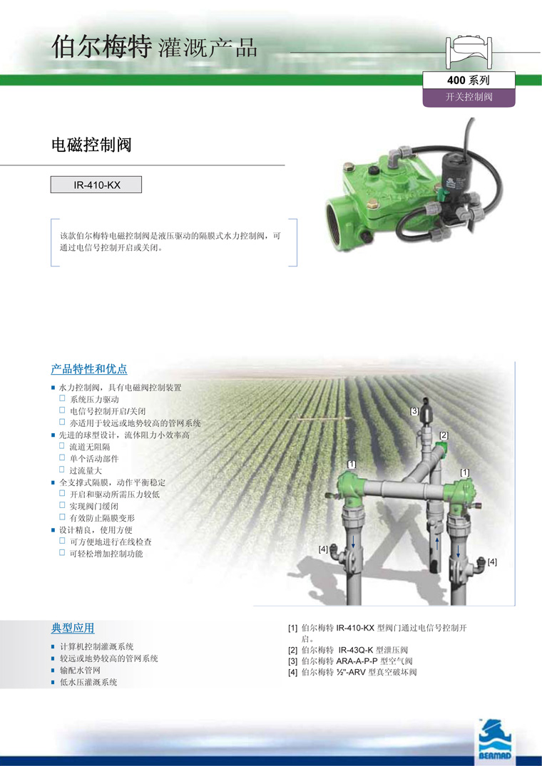 以色列伯爾梅特BERMAD伯爾梅特410電磁控制閥,是液壓驅(qū)動(dòng)的隔膜式水力控制閥,可通過(guò)電信號(hào)控制開(kāi)啟或關(guān)閉。
