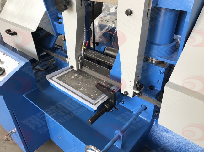 根據(jù)切割角度要求分為角度鋸床(能鋸切角度90度45度)無(wú)角度即90度垂直切割。1、鋸切角度調(diào)整:如要鋸切45度角內(nèi)任一角度時(shí),先放松固定把手,然后將鋸弓順時(shí)針?lè)较蛲妻D(zhuǎn),對(duì)準(zhǔn)本座上之角度標(biāo)尺上您所需要的角度刻度上,在鎖緊固定把手。2、當(dāng)您調(diào)整好鋸切角度時(shí),小虎鉗角度亦需跟著調(diào)整放松虎鉗固定螺絲,再將小虎鉗推向大虎鉗,使小虎鉗與大虎鉗角度相同,在鎖緊固定螺絲后即可。