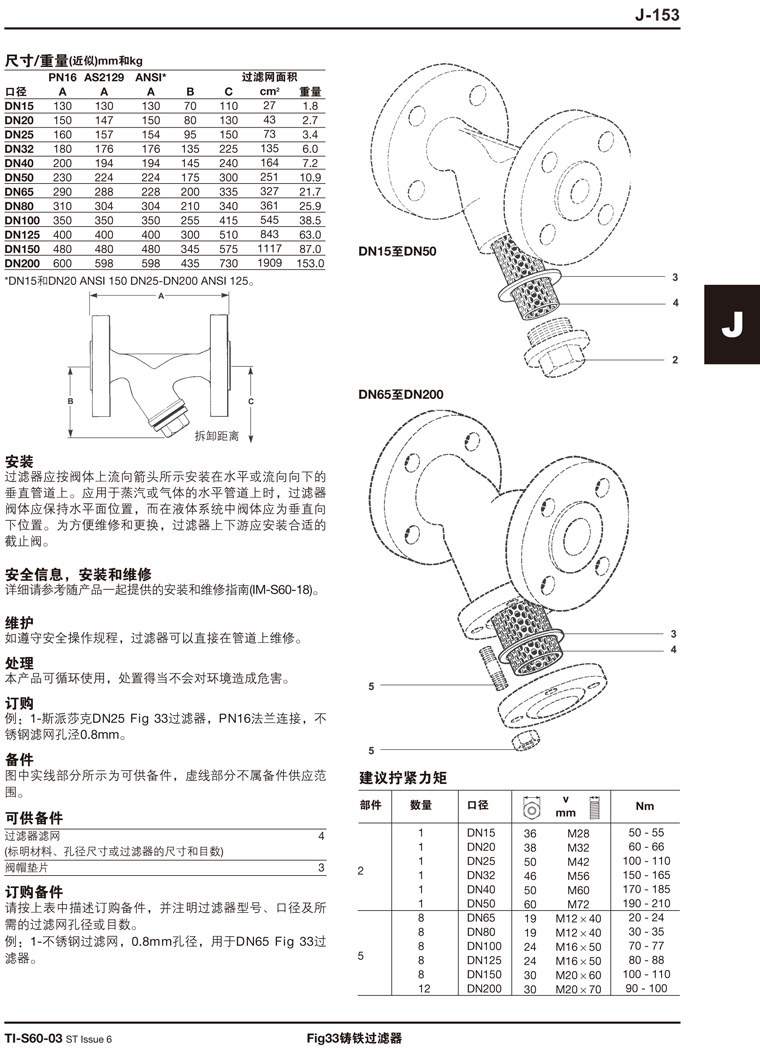 DN40斯派莎克Y型過濾器FIG33法蘭過濾器采用球墨鑄鐵閥體,不銹鋼濾網(wǎng),DN40PN16法蘭連接,適用于蒸汽管道過濾。